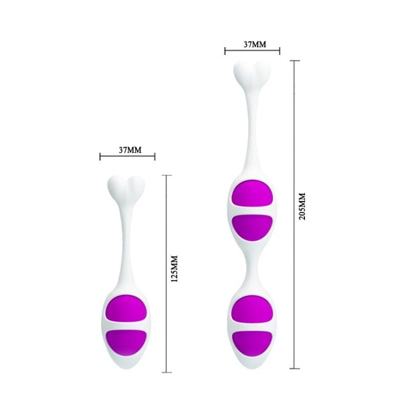 Kegel Ball Alice, El uso de estas magníficas bolas Kegel de silicona tiene varios beneficios. Estas suaves bolas de forma ovalada se mantienen dentro de una jaula de silicona blanca con un extremo en forma de corazón. Cada bola presenta un pequeño peso interior que se mueve dentro de la bola. Simplemente inserte las bolas, usando la jaula de silicona para mantenerlas en su lugar (también para recuperarlas de manera segura) y, a medida que se mueve, las pesas internas harán clic y golpearán, provocando espasmos en sus músculos. Estos espasmos despertarán tus sentidos y trabajarán para apretar tu vagina de manera efectiva. Este juego de bolas Kegel incluye una bola simple y una bola doble, lo que te permitirá mejorar tu experiencia.